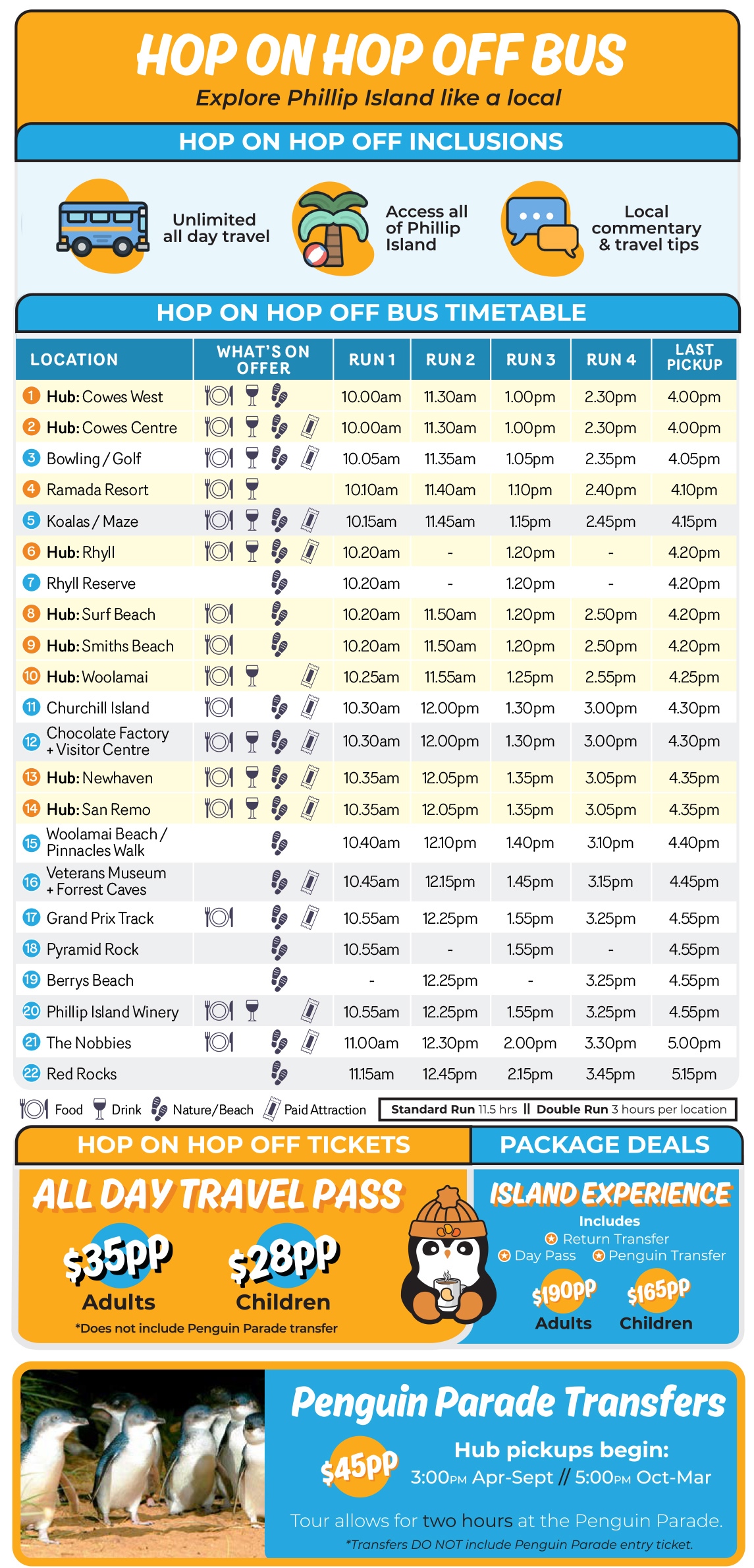 Even better? The Island Explorer offers seamless transfers to and from Melbourne CBD and Airport, making it perfect for interstate and international travellers looking for an easy way to reach the island - no car required.